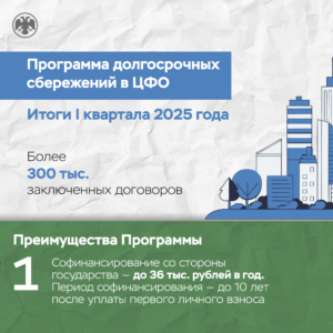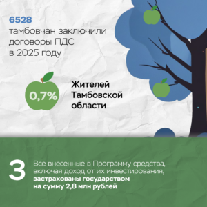 Более полумиллиарда рублей было вложено тамбовчанами в Программу долгосрочных сбережений (ПДС). Эти средства включают как личные взносы, так и переведенные накопления из негосударственных пенсионных фондов, заявления на перевод которых были поданы в прошлом году. Из них 124 млн было внесено за первые три месяца текущего года. Всего с начала 2025 года свыше 6,5 тысяч жителей области уже заключили договоры ПДС.
