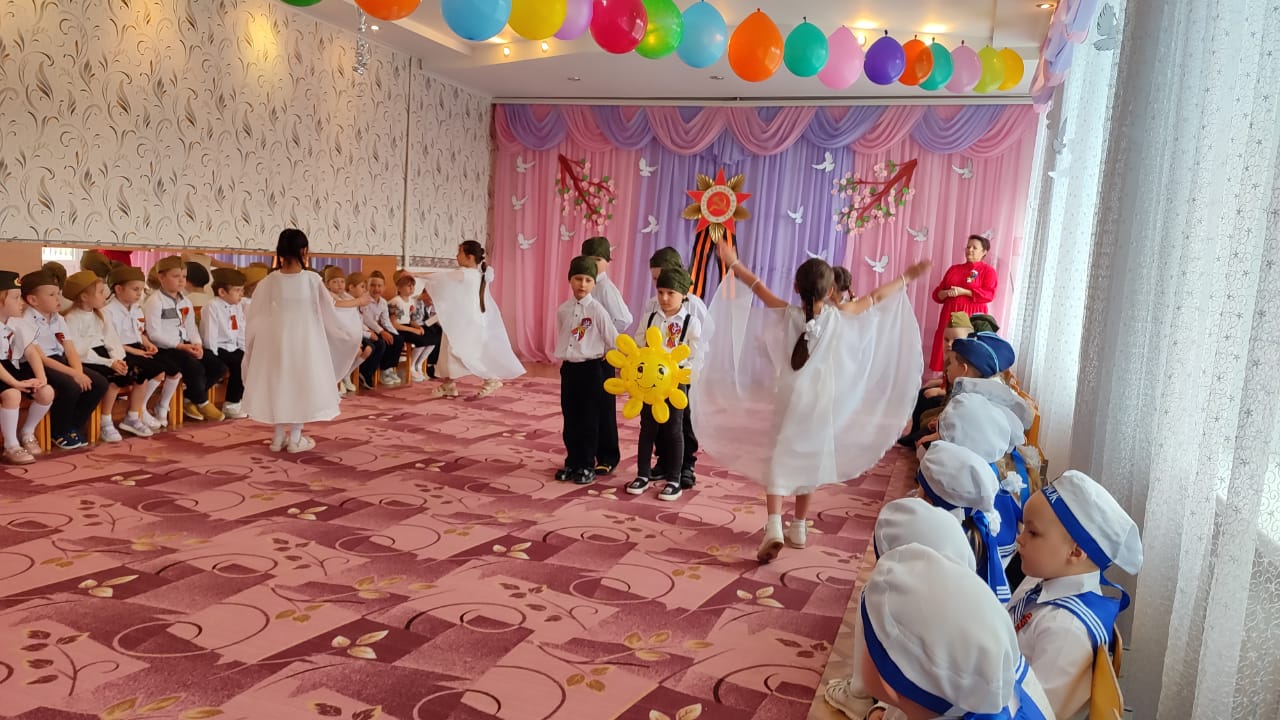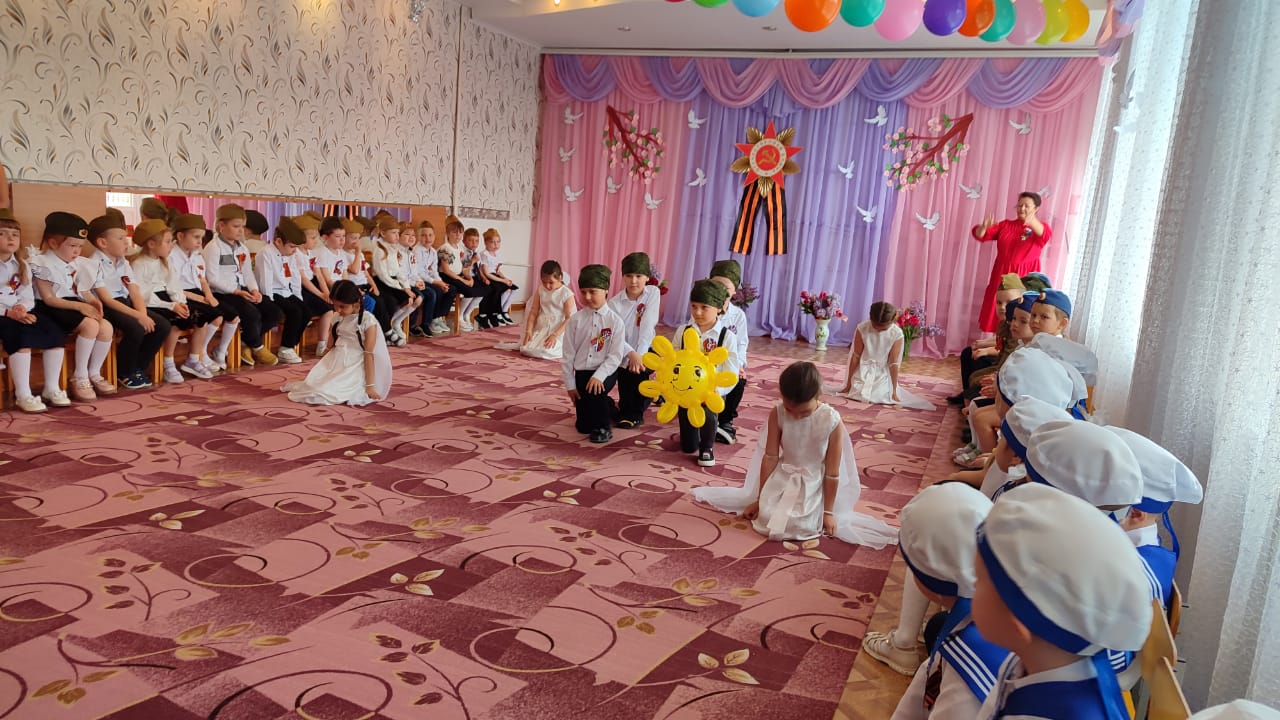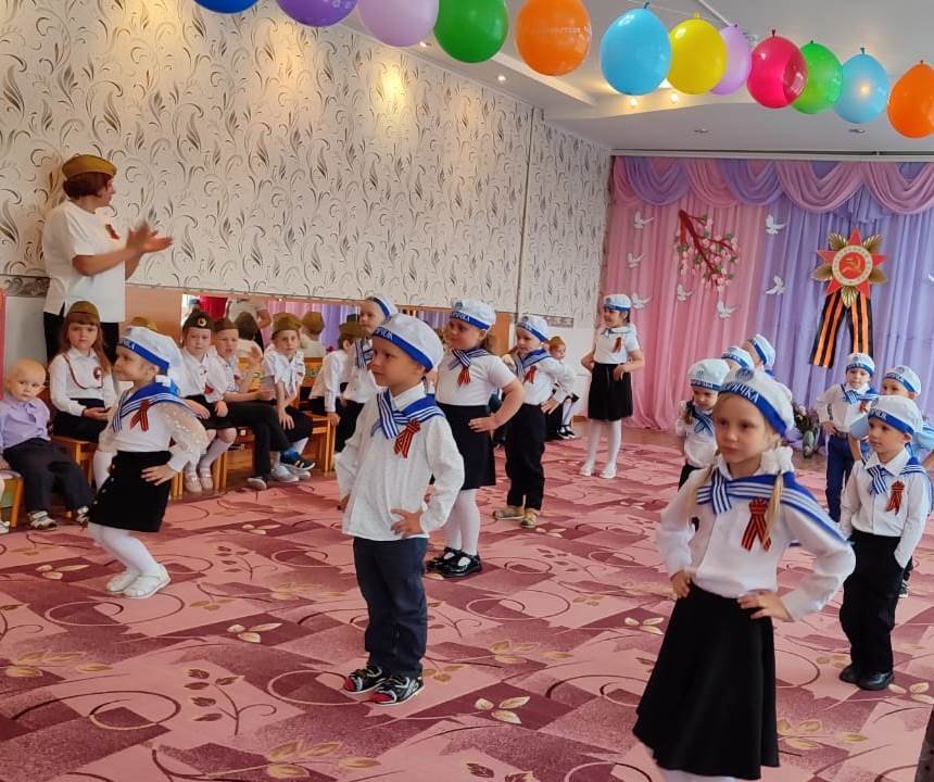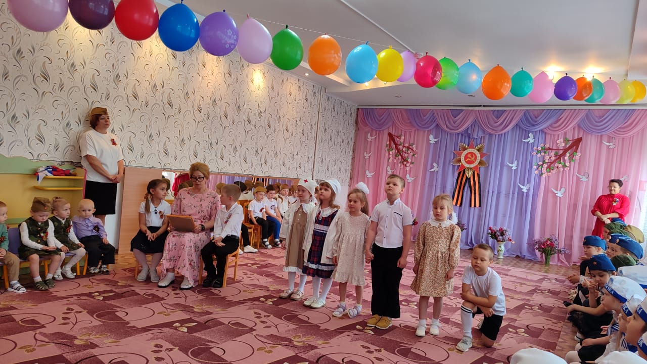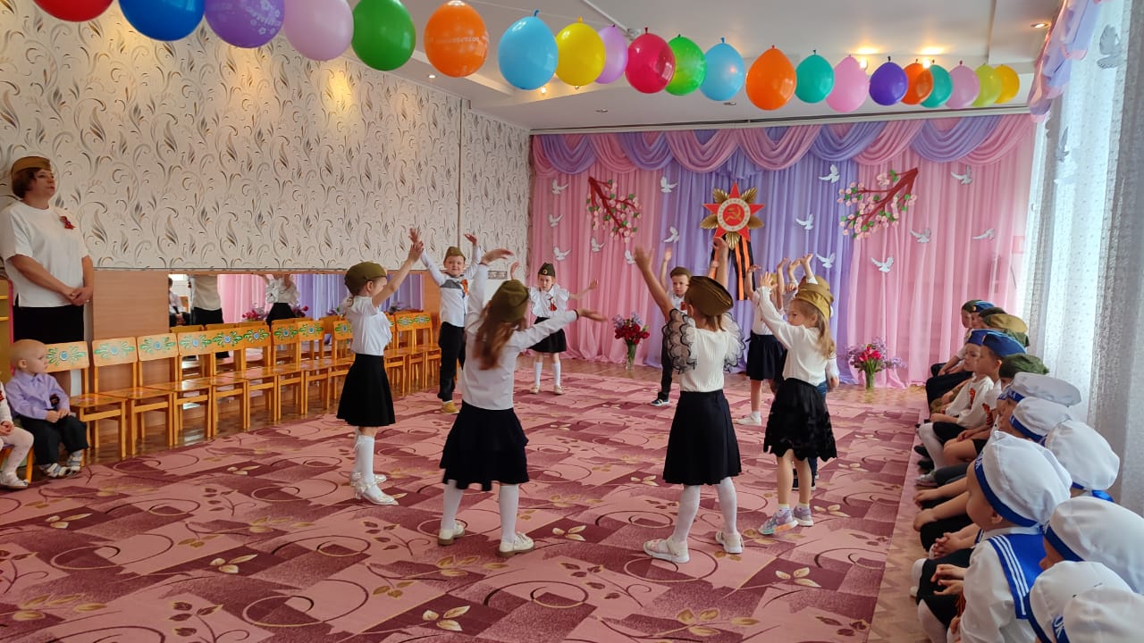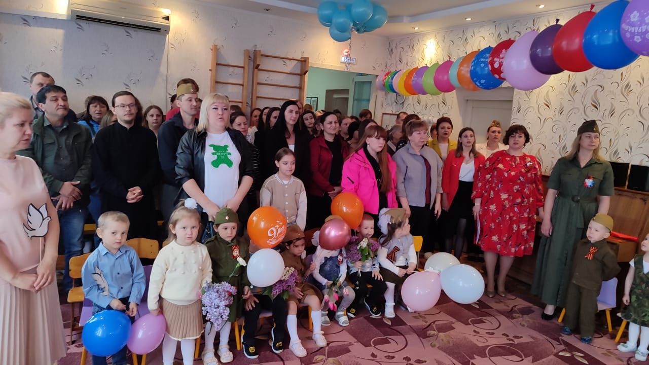 После парада дети показали праздничный концерт, на котором воспитанники пели военные песни, читали стихи, показали сценку «Ожившая фотография» и танцевальные номера.