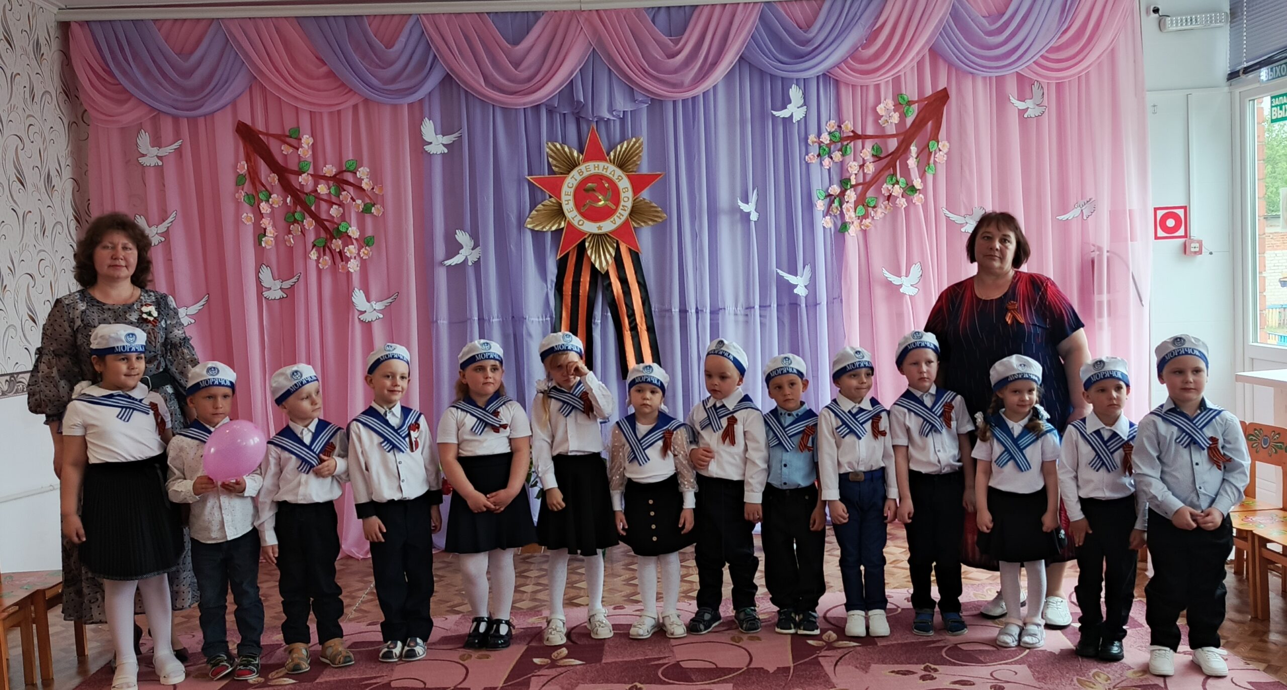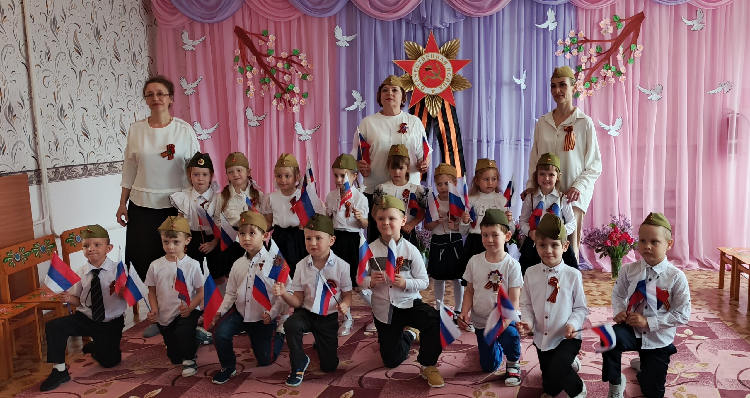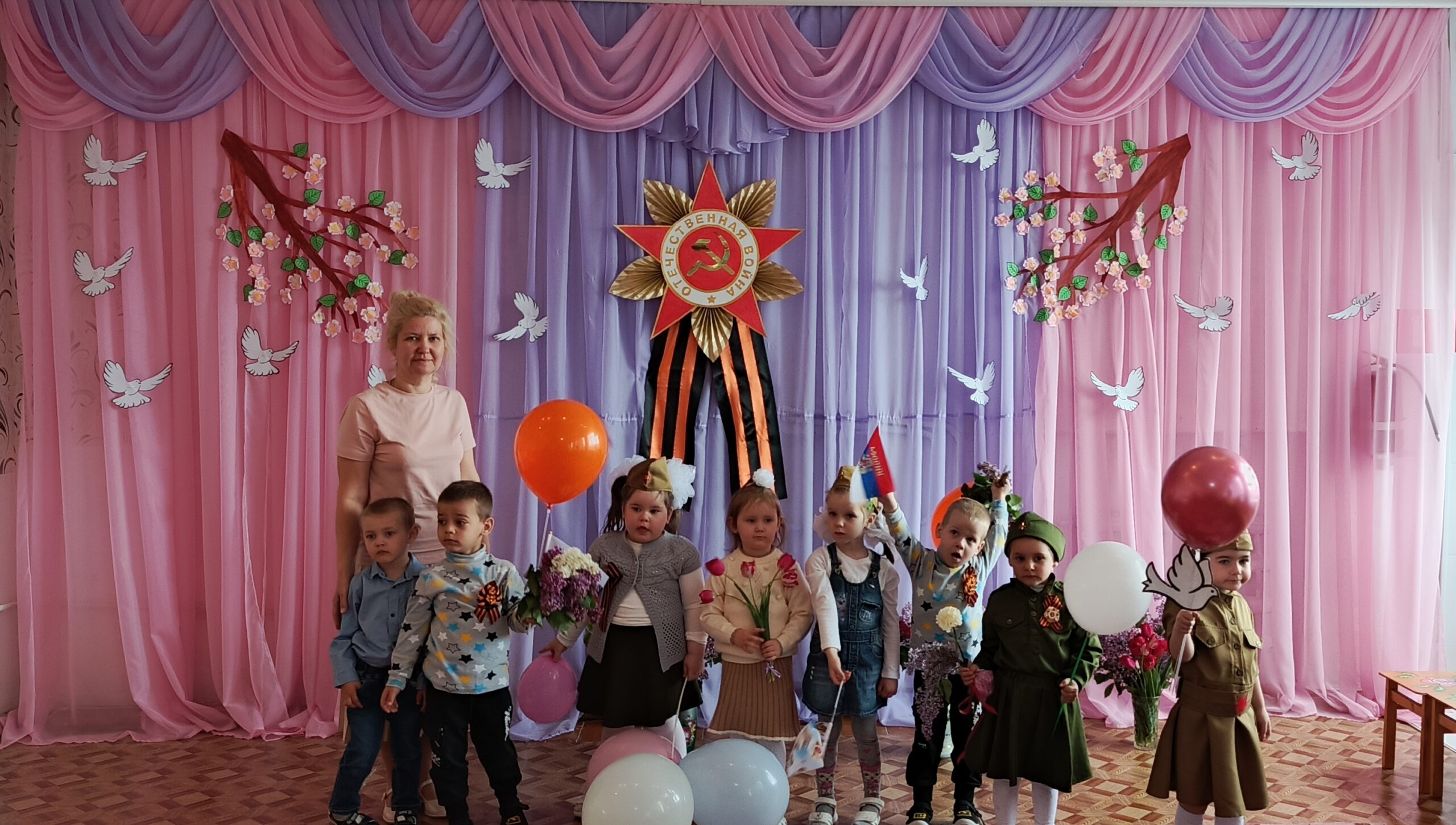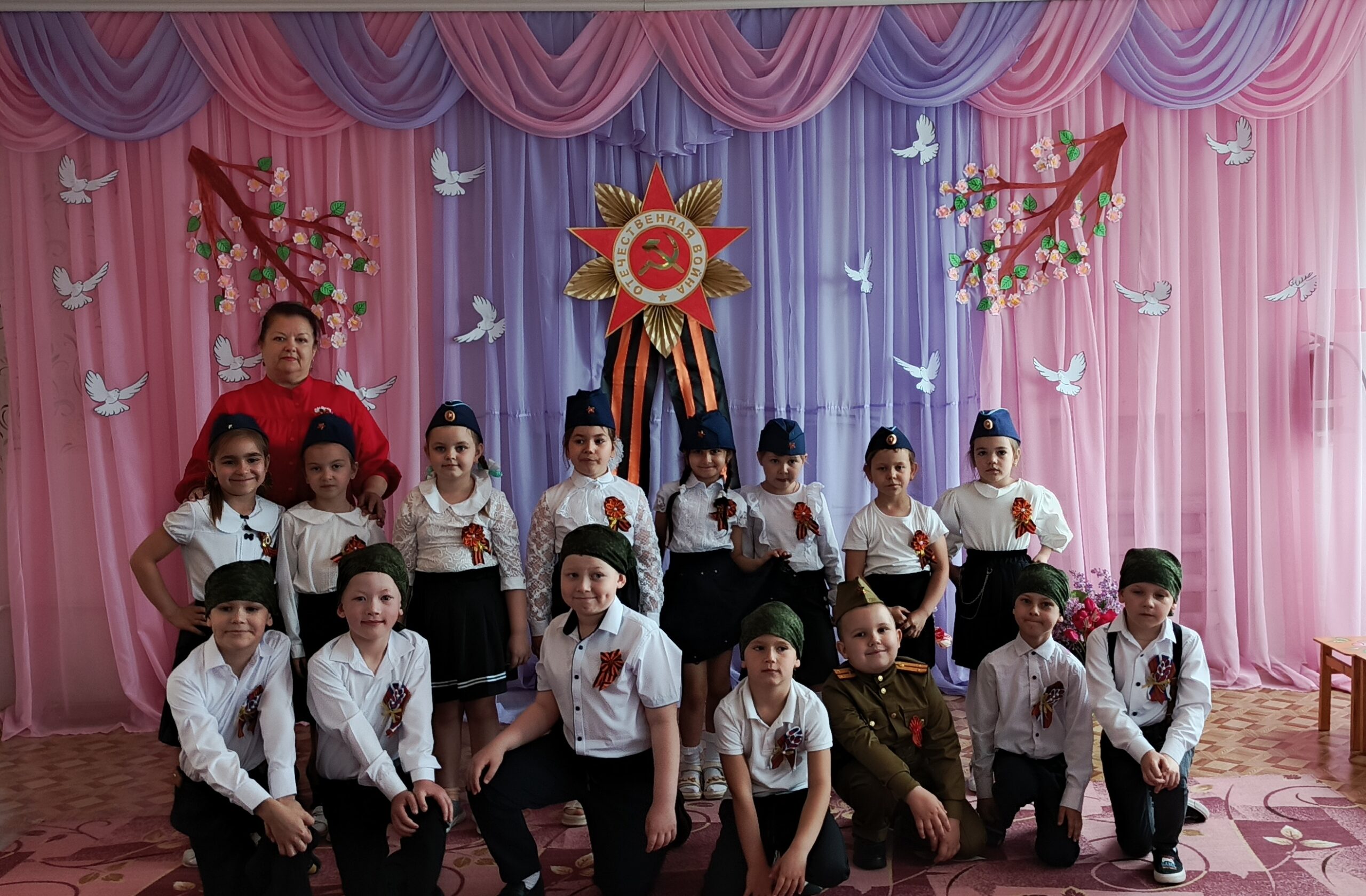 После парада дети показали праздничный концерт, на котором воспитанники пели военные песни, читали стихи, показали сценку «Ожившая фотография» и танцевальные номера.
