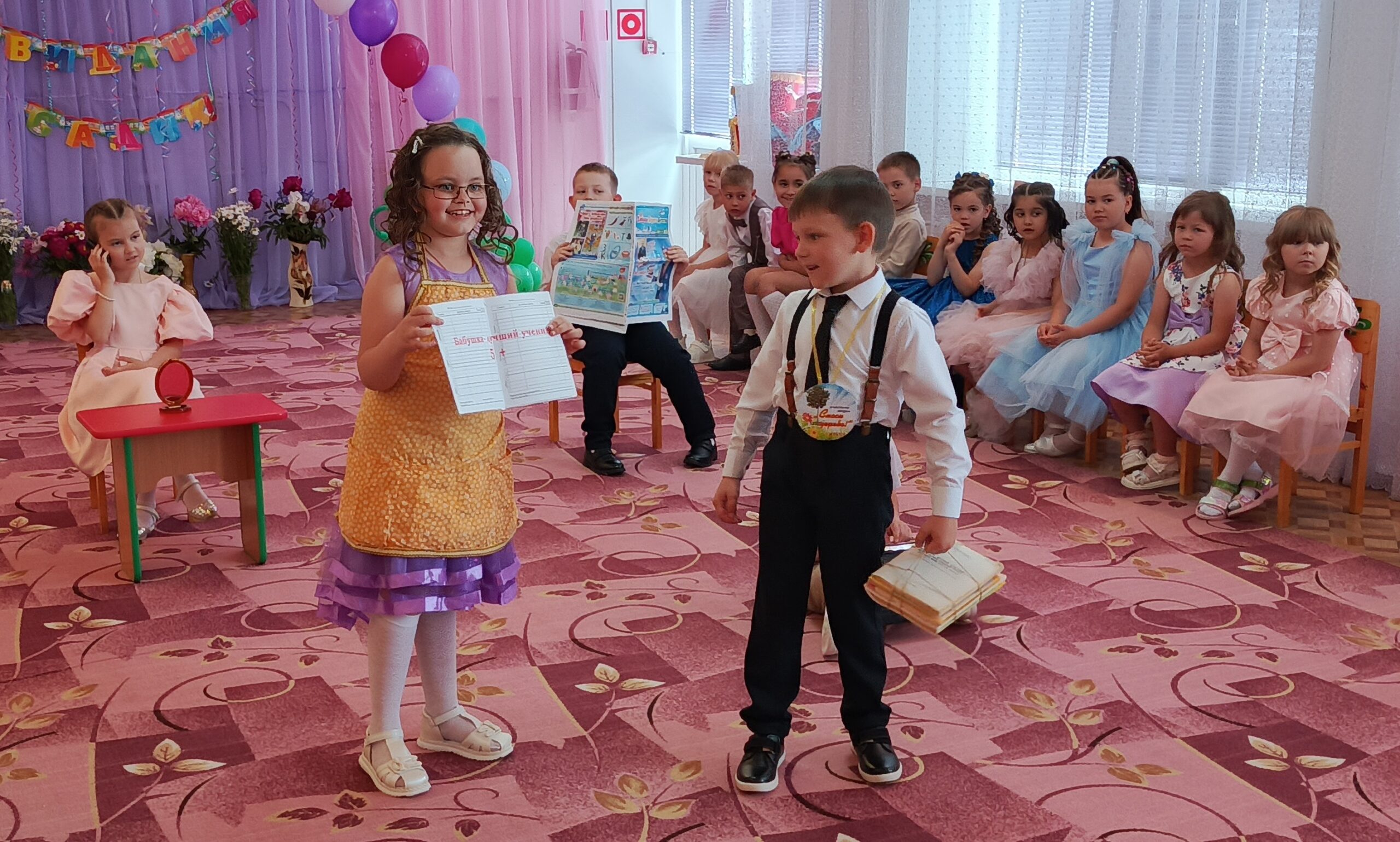 Выпускной — особенный, волнующий и радостный день, символизирующий прощание с детским садом и начало школьной жизни. Этот день стал по-настоящему незабываемым! Торжественно и трепетно встречали юных выпускников под аплодисменты, тёплые слова и лучезарные улыбки гостей. Дети пели душевные песни, танцевали весёлые и яркие танцы, читали стихи, показывали сценки и, конечно же, исполнили трогательный прощальный вальс.