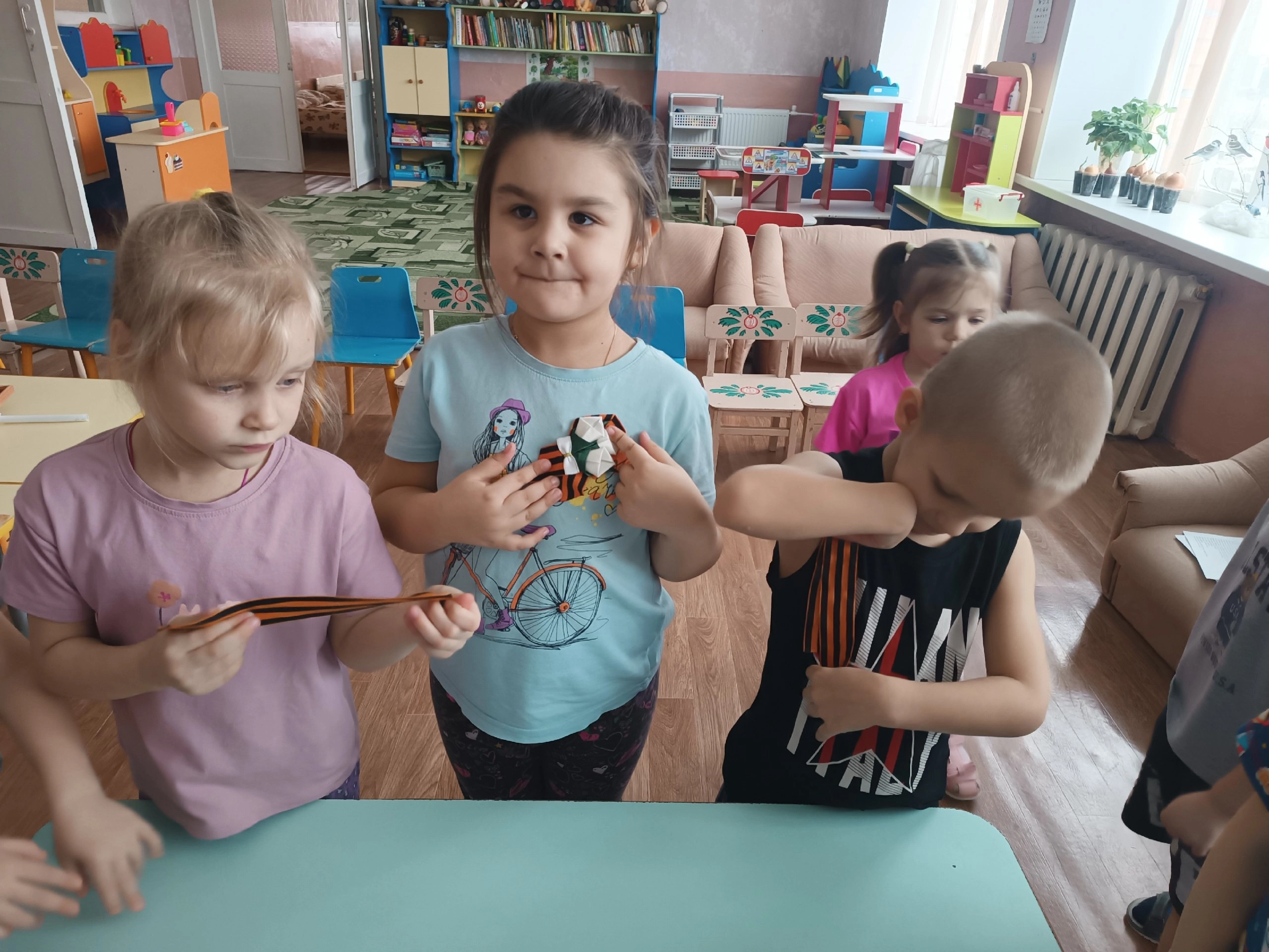 Дети группы «Непоседы» также приняли самое активное участие во всех мероприятиях,посвящённых этой знаменательной дате. Красной строкой эта тема прошла в различных видах деятельности в нашем ДОУ: беседах,занятиях по ИЗО,физкультурной деятельности,музыкальной,художественно литературе.
